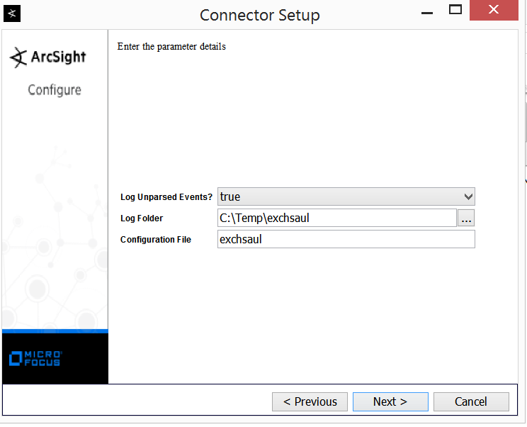 Download the latest distributive for the ArcSight Connectors. For our purpose we need to install in on the Windows server. Proceed to install Core Software. Read how to do it on the page 31 of the FlexConnector Developer’s Guide
