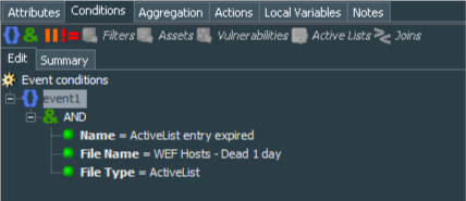 That means that entries to the fisrt three Active Lists will expire after 1, 6, and 7 days respectively tracking the dead hosts up to 30 days in total. Entries in the WEF Hosts - Dead 30 days list will remain until host starts sending events or unril you decide to delete the entry manually.